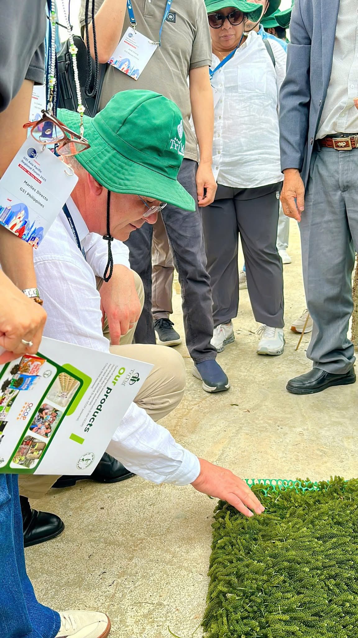 Đoàn đại biểu quốc tế đã được tham quan, tìm hiểu mô hình sản xuất của Trí Tín. Tại đây, họ được nghe tận tai – nhìn tận mắt – sờ tận tay từng bó rong biển tươi, từng công đoạn tách nước và đóng gói.