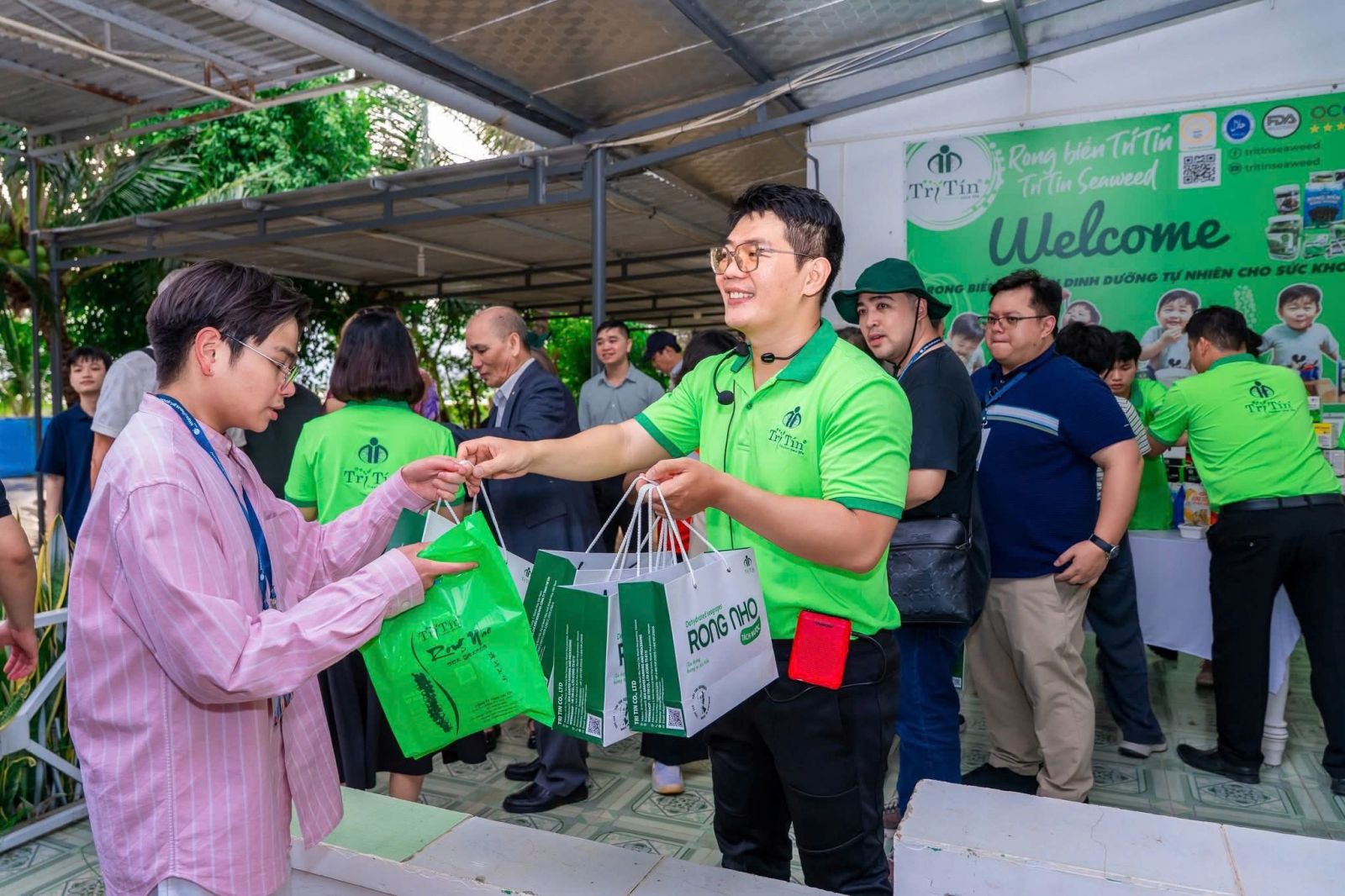 Tại sự kiện, đoàn khách quốc tế không chỉ được nghe giới thiệu về quy trình trồng, thu hoạch và chế biến rong biển, mà còn tận mắt chứng kiến từng công đoạn sản xuất khép kín, đạt chuẩn HACCP và OCOP 5 sao cấp Quốc gia – những chứng nhận thể hiện sự chuyên nghiệp và nghiêm túc của Trí Tín trong từng sản phẩm.